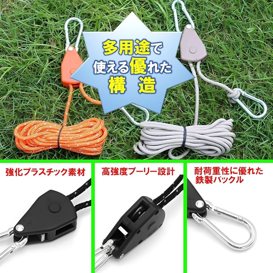 テント、タープ張りも簡単、便利、ロープワークが苦手なあなたも心配不要。