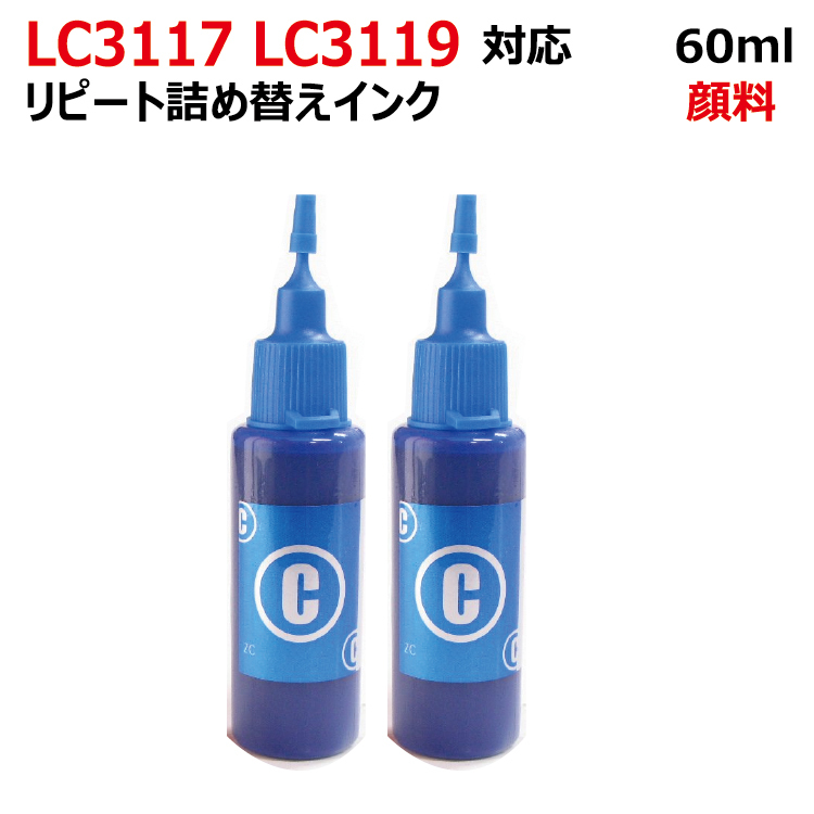 ( RPB3117C30X2 ) ブラザー LC3117 LC3119 対応 リピート 詰め替えインク ブラック シアン 顔料 X 60ml (インクボトルのみ)