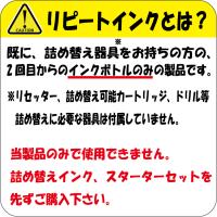 リピートインクは既に、詰め替え部品をお持ちで使用方法をご存じの方の、2回目からのインクボトルのみの製品です。