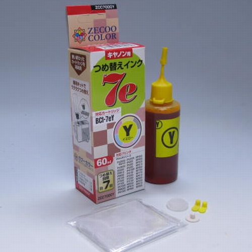 ( ZCC7000Y )キヤノン用( BCI-7eY )( BCI-6Y )( BCI-3eY )対応 詰め替えインク イエロー( YELLOW ) 60ml ( 器具付 )