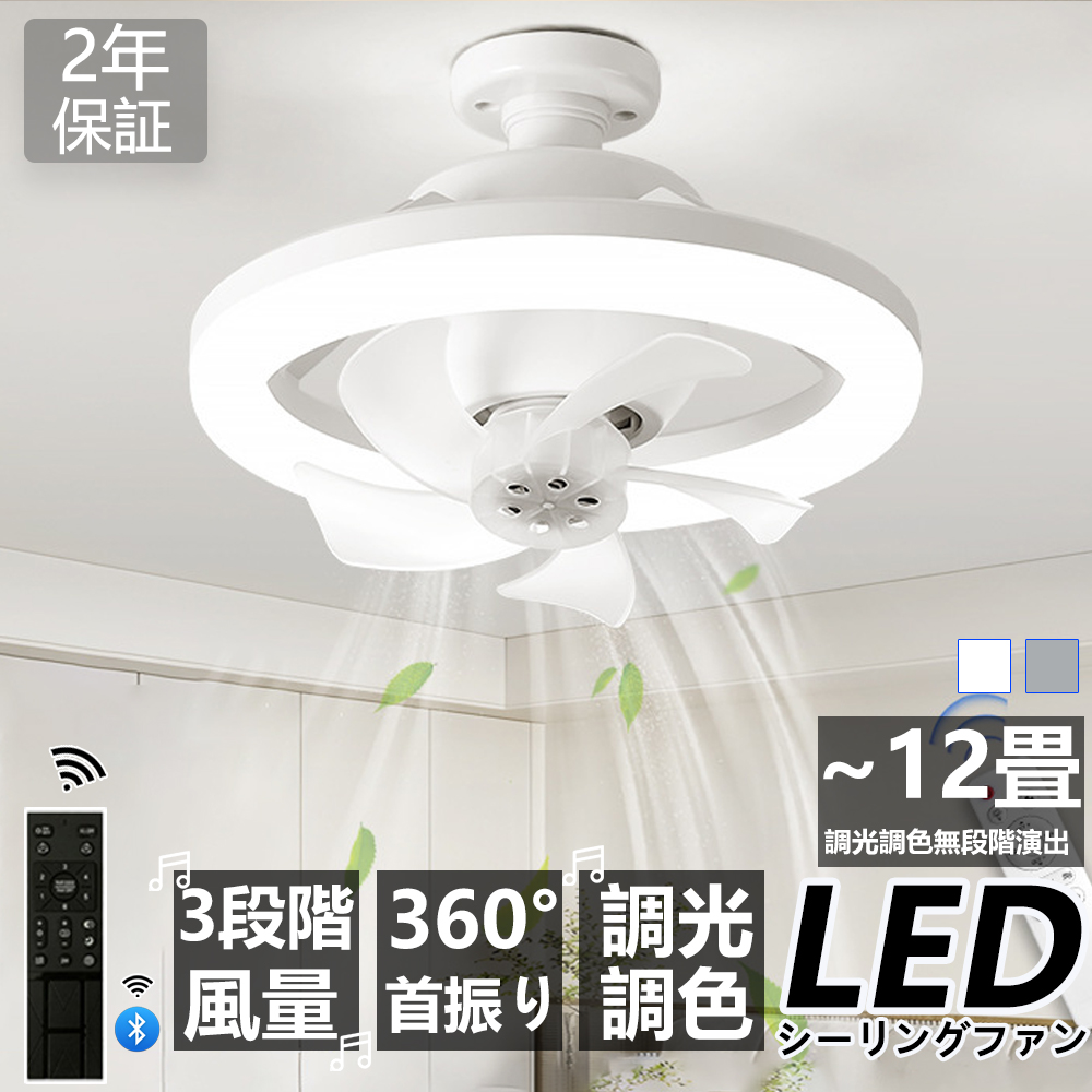 【広く使用されている】ライト付き天井ファン、ファンとLEDライトの組み合わせ、屋内、和室、寝室、子供部屋、オフィスなど様々な場所に適しています。