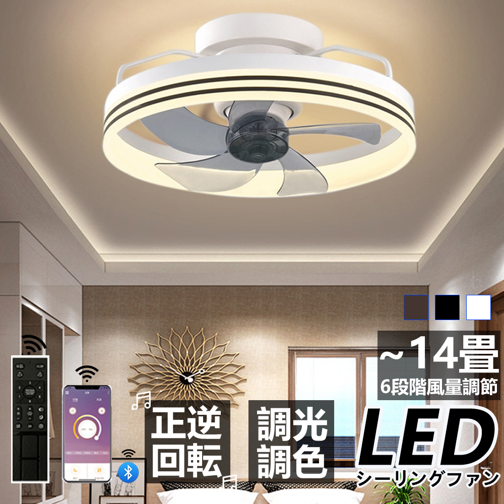 シーリングファンライト led 14畳 DCモーター シーリングライト 薄型 軽量 北欧 調光調色 リモコン 6段階風量調節 照明器具 天井照明 常夜灯 寝室 家庭用
