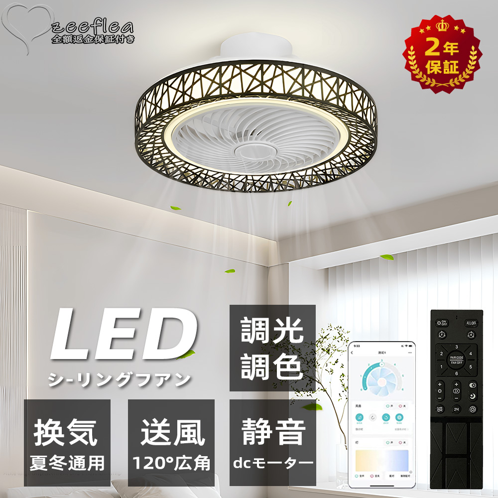 シーリングファンライト リモコン付 APPアプリ操作 ledファン サーキュレーター 簡易取付式 dcモーター ファン付き照明 シーリングファン