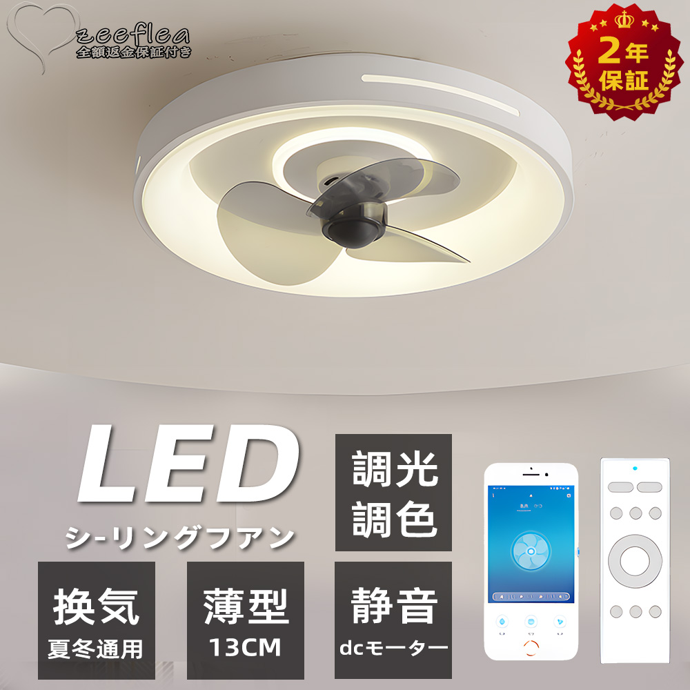 シーリングファンライト サーキュレーター 2年保証 薄型 シーリングライト DC シーリングファン 8畳 10畳 おしゃれ 軽量 ファン付き LED