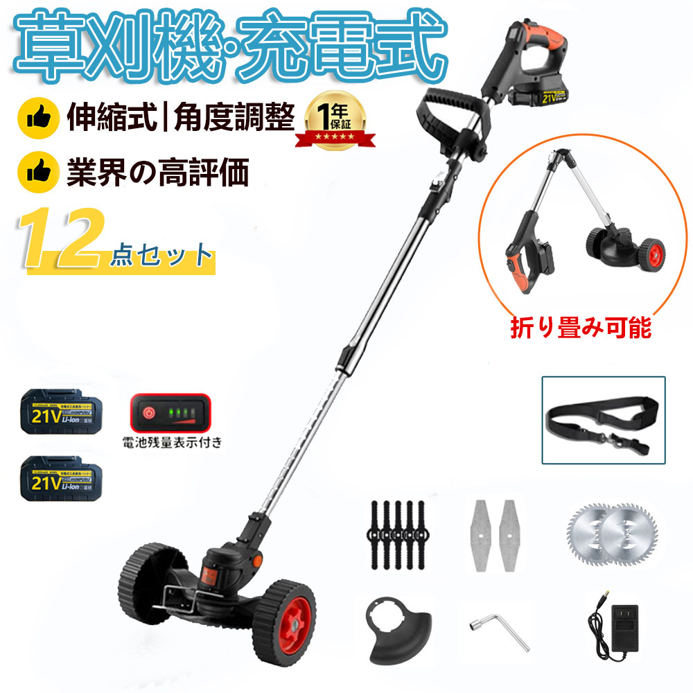 充電式草刈機 電動草刈り機 コードレス 刈払機 家庭用 折りたたみ 電池残量表示画面付き 伸縮式 3種の刃付き 折り畳み 芝刈り機 刈払い機 軽量 女性 PSE認証