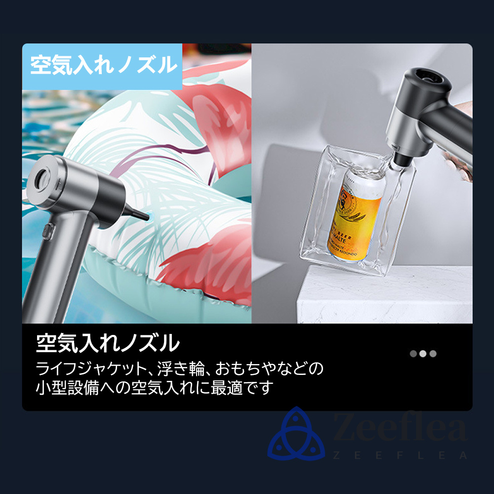 【電動エアダスター・掃除機 4in1】フーバーとしてだけでなく、家具や車の内装のクリーニングなど、他の場所にも使用できます。また、キーボードや手の届きにくい狭い場所などの掃除にも使えます。