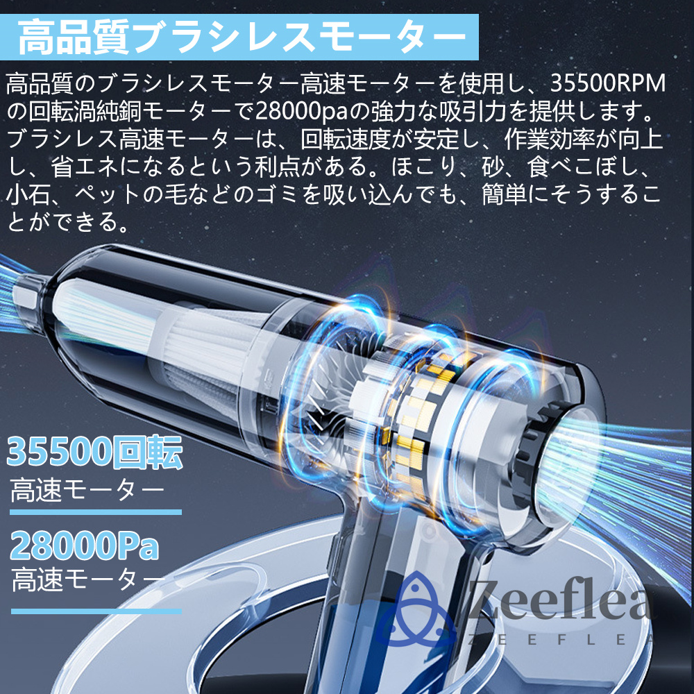 ハンディクリーナー 強力 掃除機 コードレス ブラシレスモーター 車 用フィルター 充電式 28000pa 車用掃除機 小型 静音 軽量 usb 吸引力 吸引力が強い おすすめ
