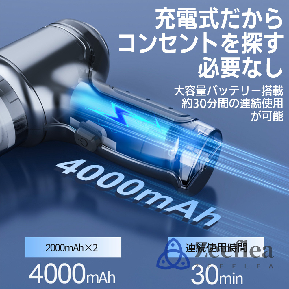 【強力エアダスター&ミニ掃除機】この手持ち掃除機は4000mAhのリチウムバッテリーを内蔵しており、5V/1A Type-C充電をサポートし、3?3.5時間で急速にフル充電できます。