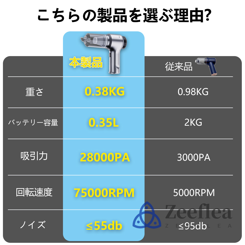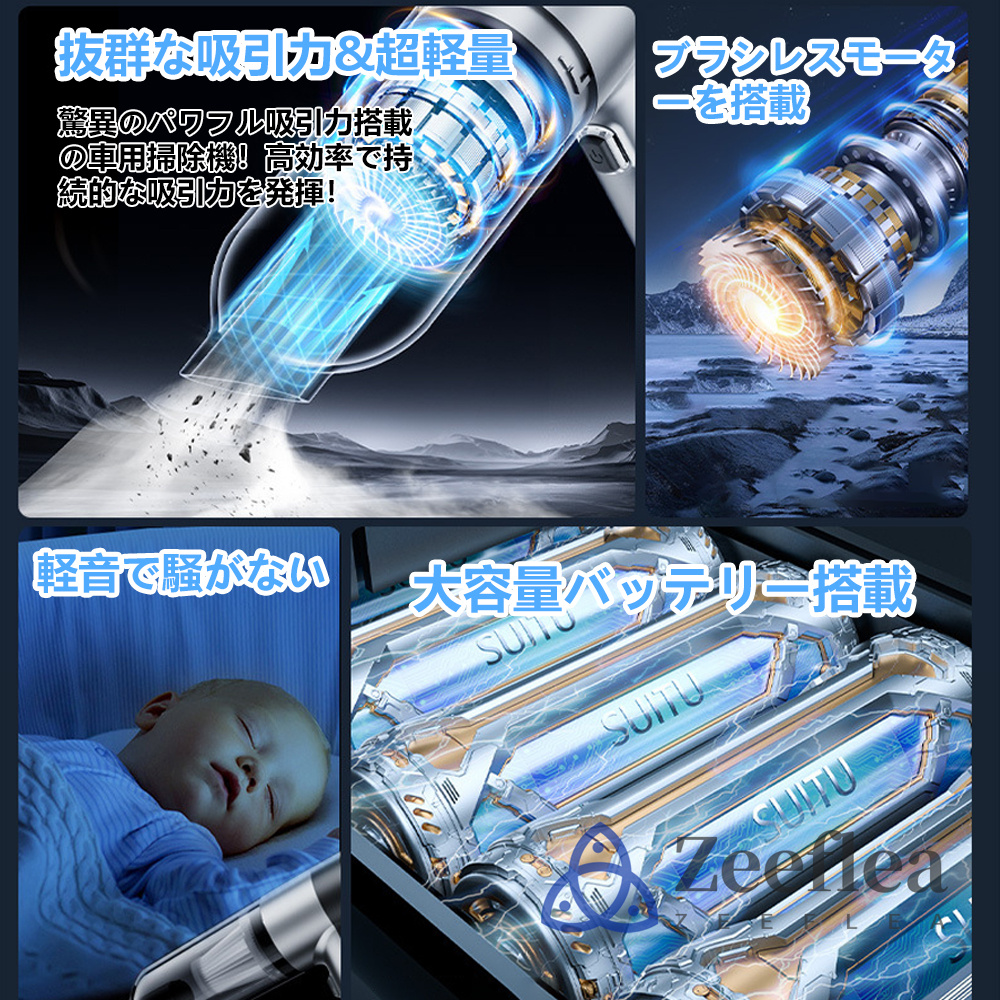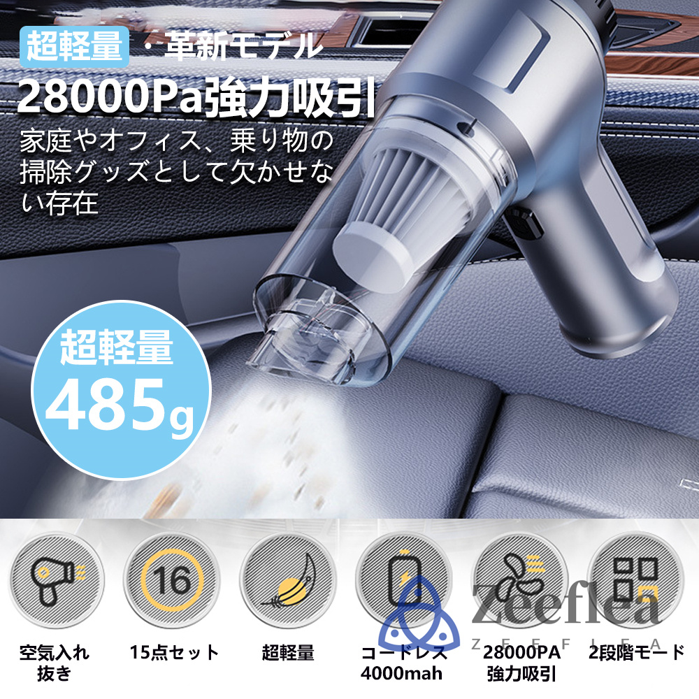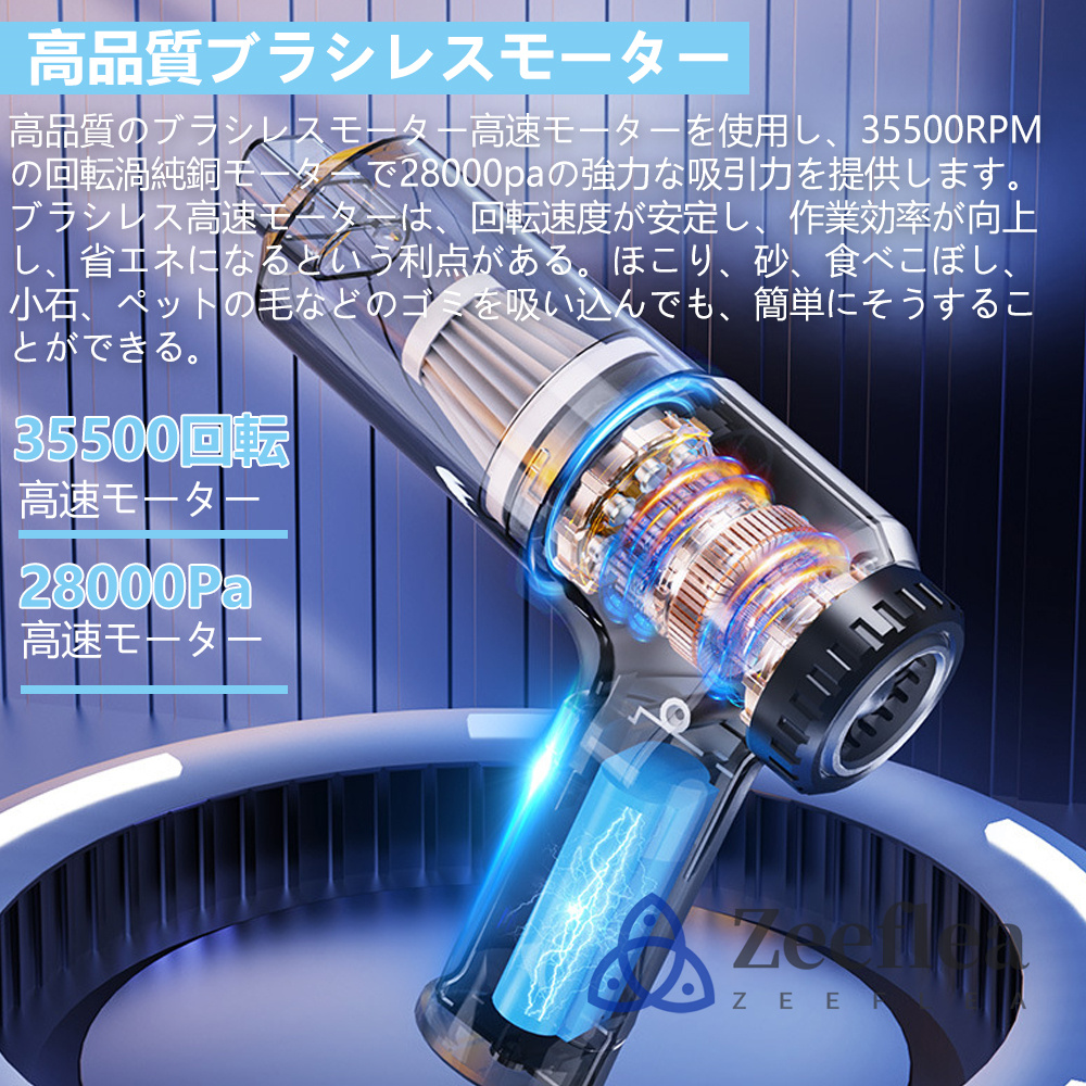 ハンディクリーナー 強力 掃除機 コードレス ブラシレスモーター ハンドヘルド掃除機 車 充電式 28000pa 車用掃除機 小型 静音 軽量 usb 吸引力 おすすめ