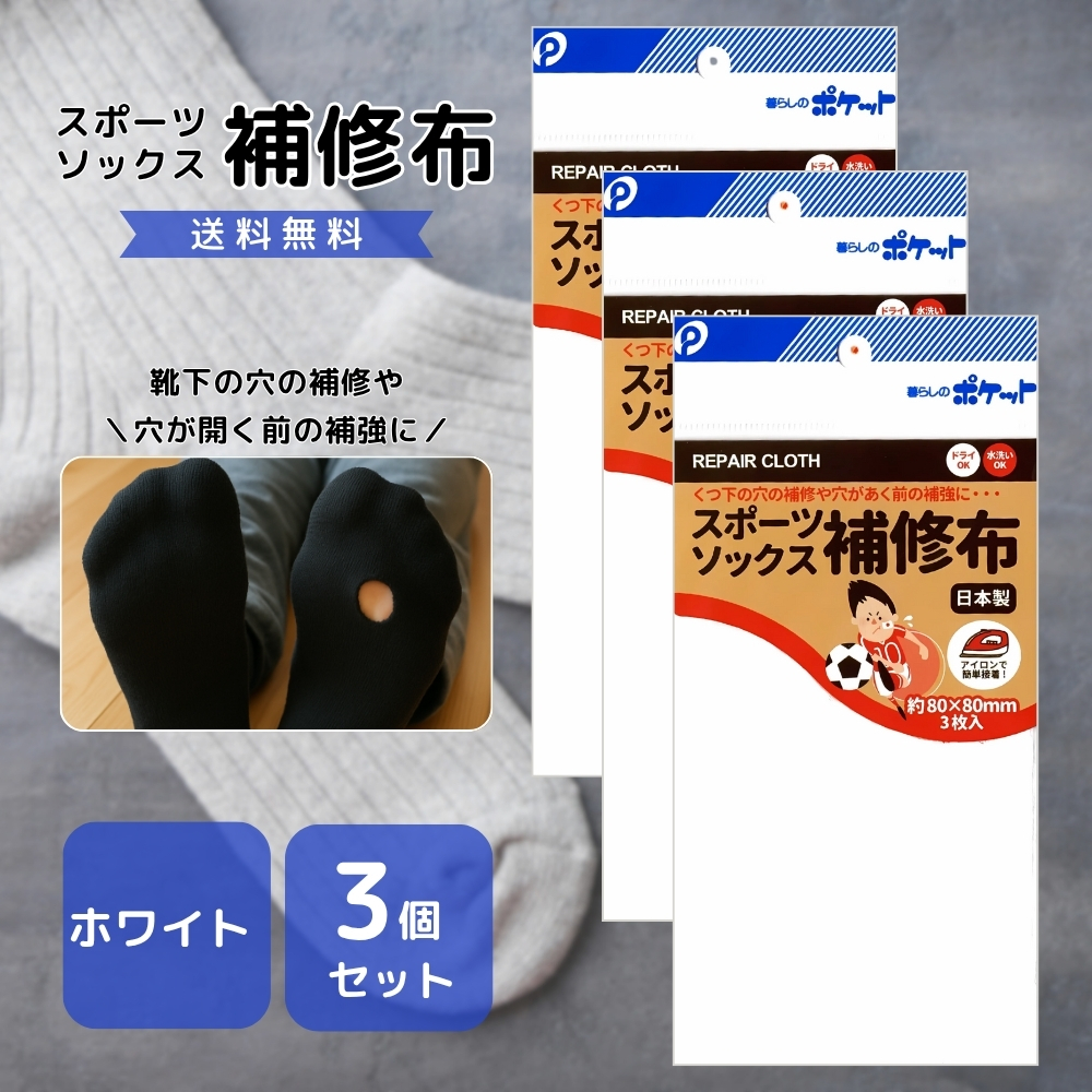 スポーツソックス 補修布 3枚入 3個セット ホワイト ブラック アイロン簡単接着 貼り付け簡単 くつ下 靴下 補修 補強