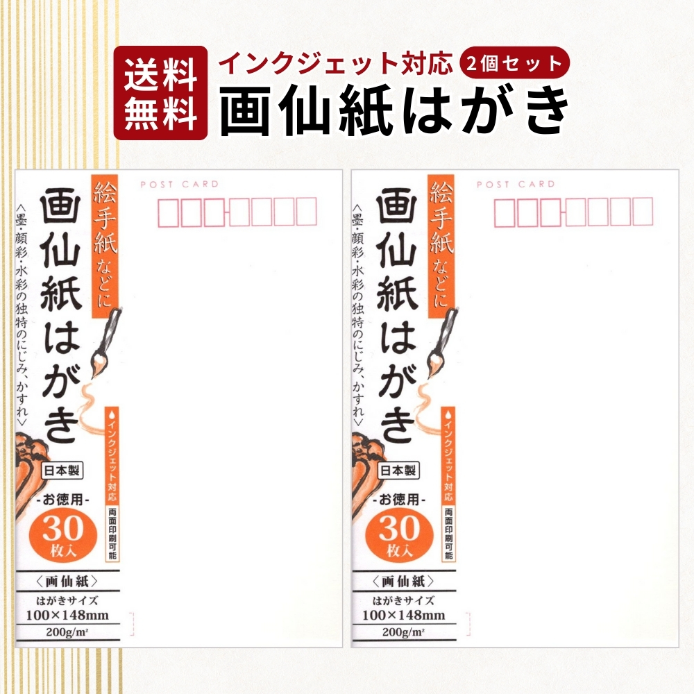 『プレミアムな日曜日■限定クーポン』画仙紙はがき 30枚入 絵手紙 2個セット インクジェット対応 和紙風 ハガキ用紙 両面印刷 日本製