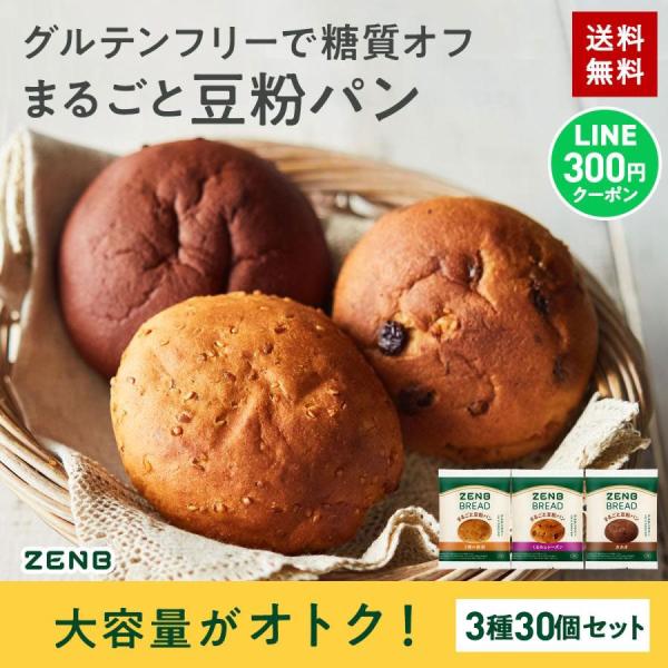 ZENB ゼンブブレッド パン 3種30個 糖質オフ グルテンフリー パン 糖質オフパン 糖質制限 グルテンフリー食品 ダイエット 時の栄養補給に 置き換え