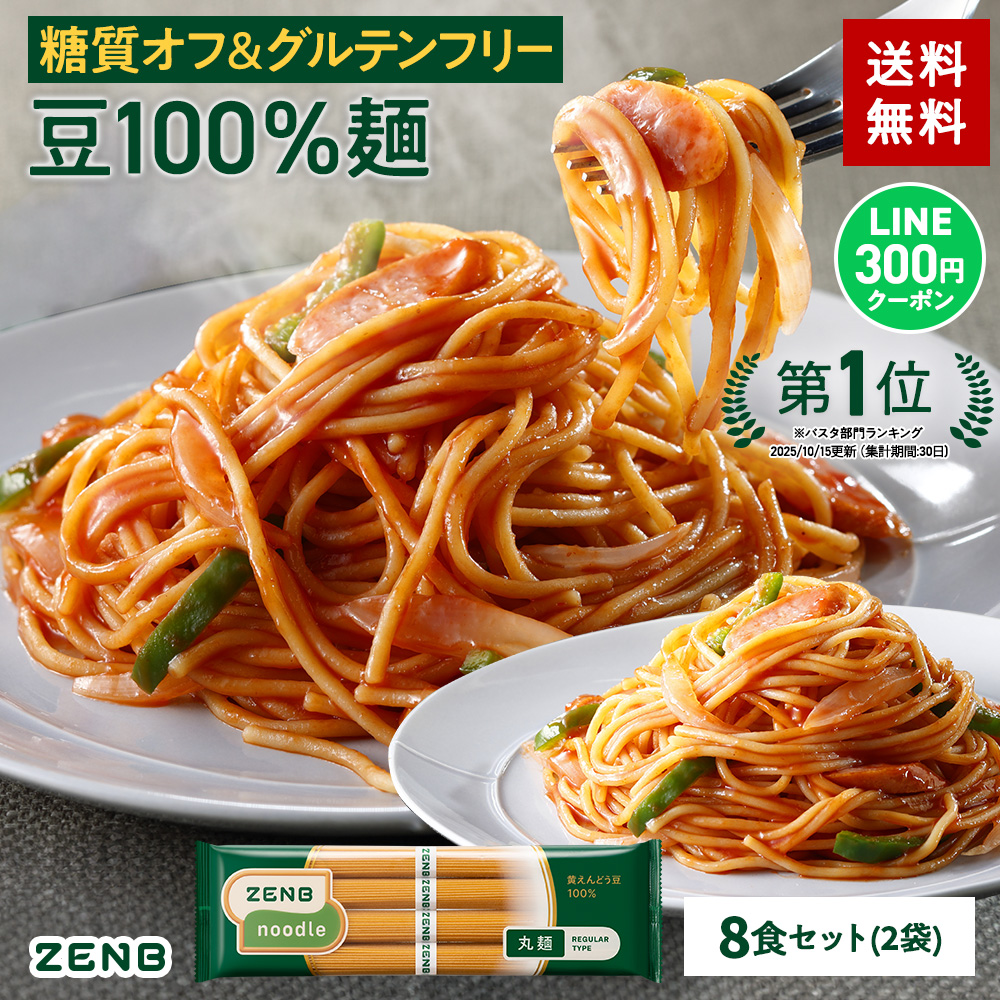ZENB ゼンブヌードル 丸麺 8食(2袋) グルテンフリー パスタ パスタ麺 糖質制限 糖質オフ麺 糖質 グルテンフリー食品 ラーメン そば うどん zenbu