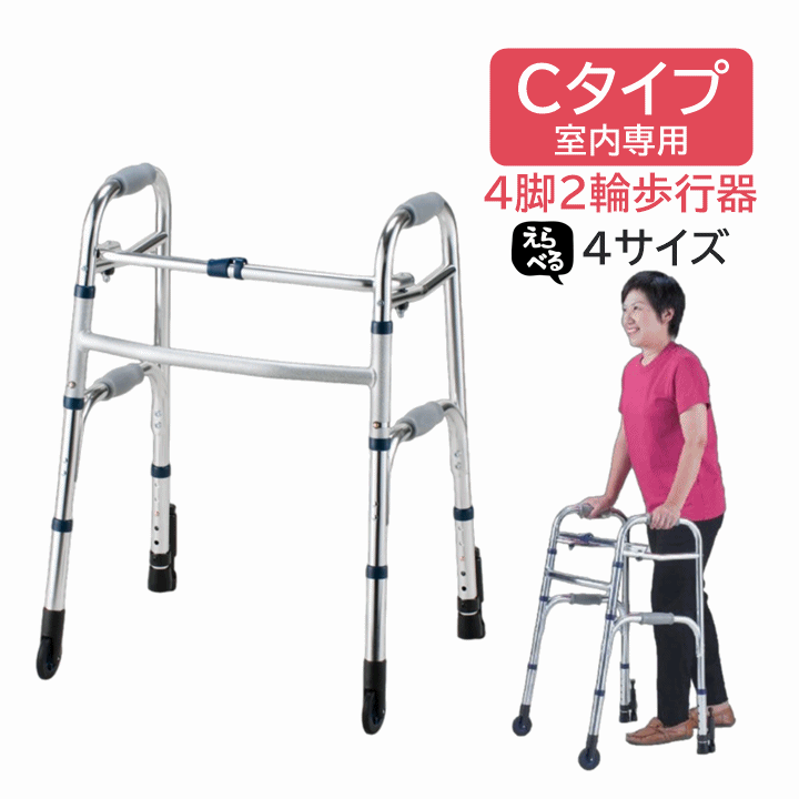 【平日15時まで即日出荷】セーフティーアーム ウォーカー Cタイプ【非課税 4脚2輪歩行器 歩行器 歩行 補助 室内 折りたたみ式 イーストアイ】