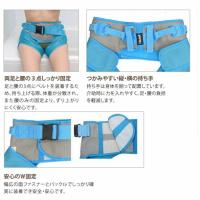 足と腰の3点にベルトを装着するため、持ち上げる際、体重が分散され、また腰のみの固定により、ずり上がりにくく安心です。
