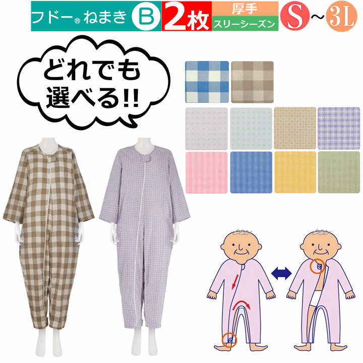 【平日15時まで即日出荷】「リニューアル!!」介護用つなぎ型パジャマ フドーねまき B(920523) よりどり2枚セット【おむついじり防止】