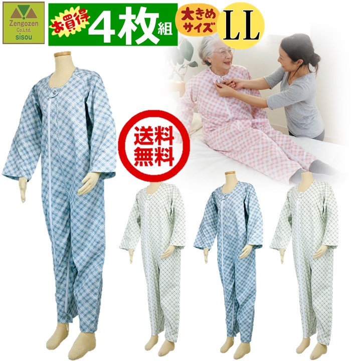 【平日15時まで即日出荷】テイコブ エコノミー 上下続き服 LL よりどり4枚セット【衣 服 介護パジャマ 介護つなぎ 介護ねまき おむついじり 認知症 いたずら】