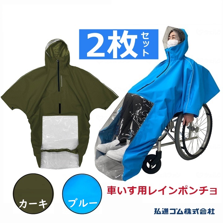 【平日15時まで即日出荷】車いすレイン はおるっちゃ ポンチョ(KS-002) 2枚セット【(938050)車いす用かっぱ カッパ レインコート】