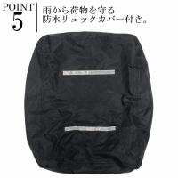 ●雨から荷物を守る防水リュックカバー付き。