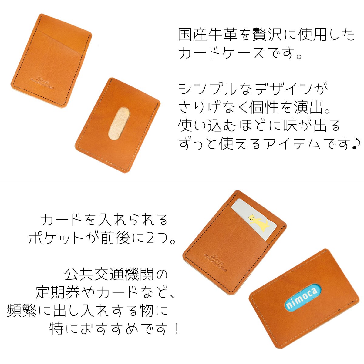 パスケース 本革 栃木レザー マイナンバーカードが丁度入る大きさ 手縫い 革 かわいい シンプルなデザイン おしゃれ 日本製 カードケース Zenis ゼニス B-0155