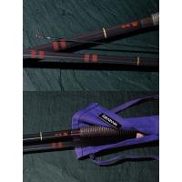 仕様詳細◇漆独特の風合いがあり、通常は黒く見えるが光が当たると青みを帯びる濃紫の総塗りに漆黒の口巻き、さらにアクセントの赤の笛巻きが彩りを添える。 立体造節部には節部を研ぎ出して一部竹地を見せる和竿の意匠をイメージさせる竹地ベース色の線入れを採用。単調になりがちな総塗りデザインに節部を強調させる独創的なデザイン。好評を得ている「新袋編握り」。「月光」よりも若干大きめを採用することで持ち重り軽減効果も発揮。 穂先は張りがあり、軽いチューブラー穂先を採用。水切れの良いへら専用極細からまん穂先。レーザー彫刻に朱色の色入れを施したネーム部。 ネーム部の裏面に長さを同様にレーザー刻印。