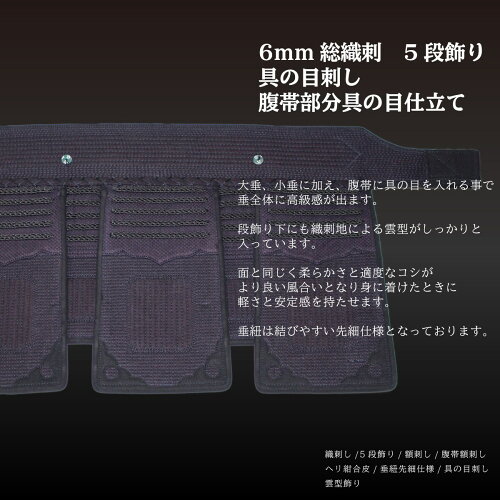 織刺・5段飾※幼少は3段・額刺・腹帯額刺・ヘリ紺合皮・垂紐先細仕様・具の目刺・雲型5段飾り 具の目刺し