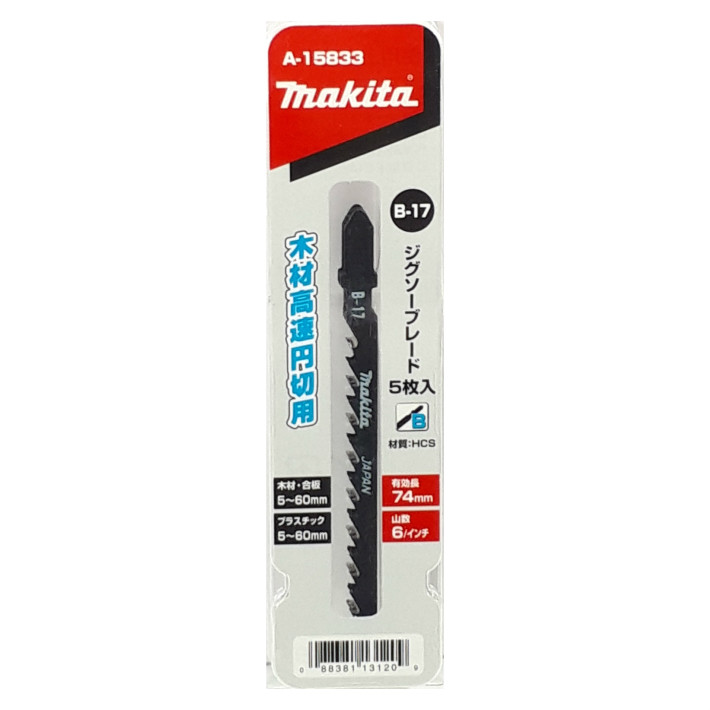マキタ ジグソーブレード 5枚入り 木材高速円切用 B-17 A-15833【ジグソー ボッシュタイプ】【ネコポス】