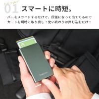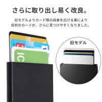 【ワンタッチで取り出し】レバーをスライドすることで一瞬でカードを取り出すことができます。階段式に取り出せる為、使うカードを選ぶ手間もありません。カードを戻す場合も取り出し口に差し込むだけ。蛇腹(じゃばら)式のように、チャックの開け閉めもなく、仕事や生活をスムーズかつスマートに演出してくれます。大容量ではないですが、必要最低限なカードのみ持ち歩けます。