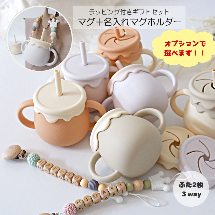 ベビー マグ スナックカップ マグホルダー付き 3way シリコン おやつケース ベビーマグセット シリコンマグカップ スナックカップ スナックケース 名入れ