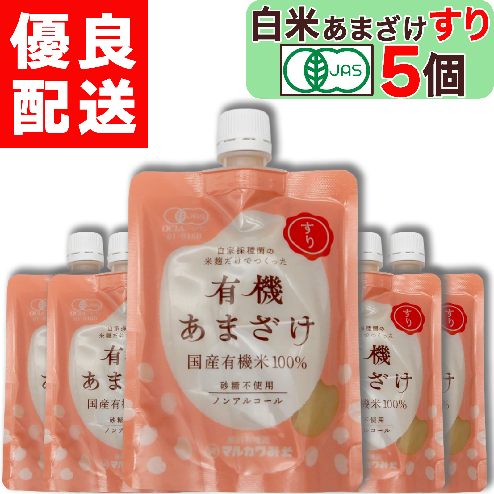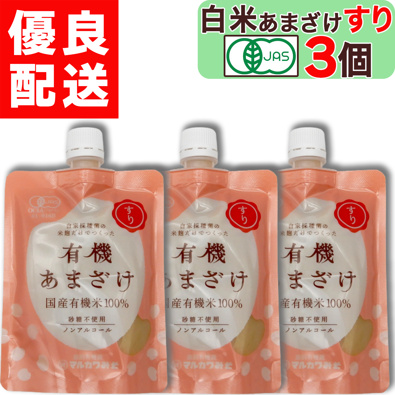 美味しいお塩のサンプル付き マルカワみそ 有機栽培 の 白米あまざけ すり 200g × 6個 有機JAS 認証 米麹 から作った 白米甘酒 ノンアルコール 無添加