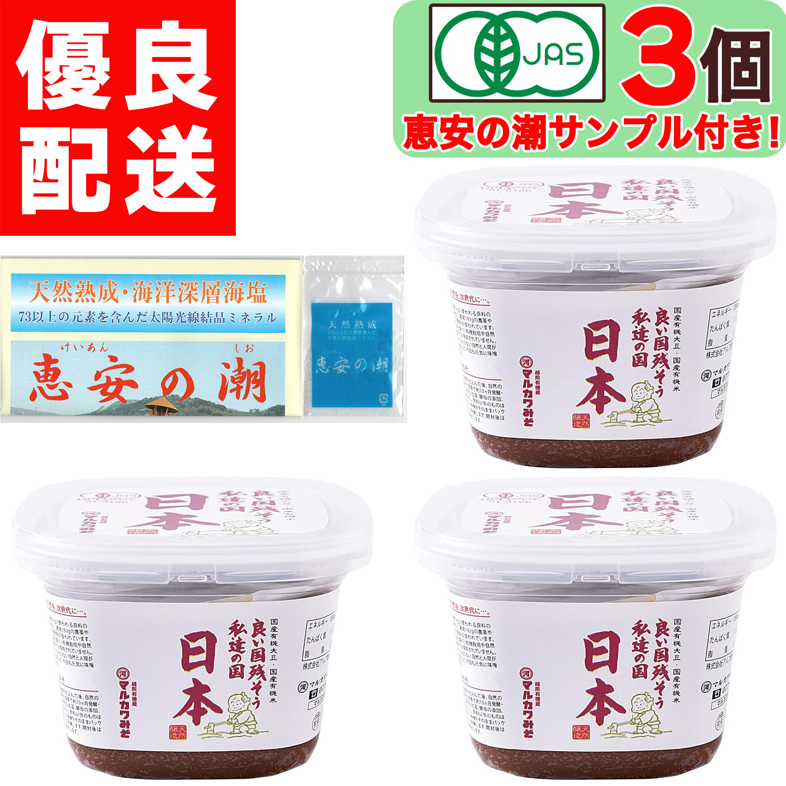 美味しいお塩のサンプル付き 有機みそ 日本 600g × 3個 辛口 国産 有機味噌 生みそ 木桶仕込み 有機JAS認証 無添加 天然醸造 越前 有機 生味噌 味噌 有機米