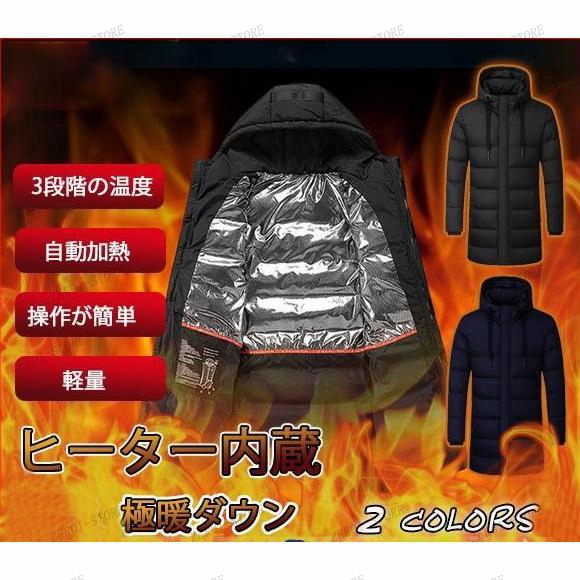 ダウンジャケット 加熱ジャケット 暖房 中綿コート ロング メンズ レディース フード付き ヒーター 内蔵 男女 3段階 電熱 温度調整 USB 防寒 暖かい 送料無料