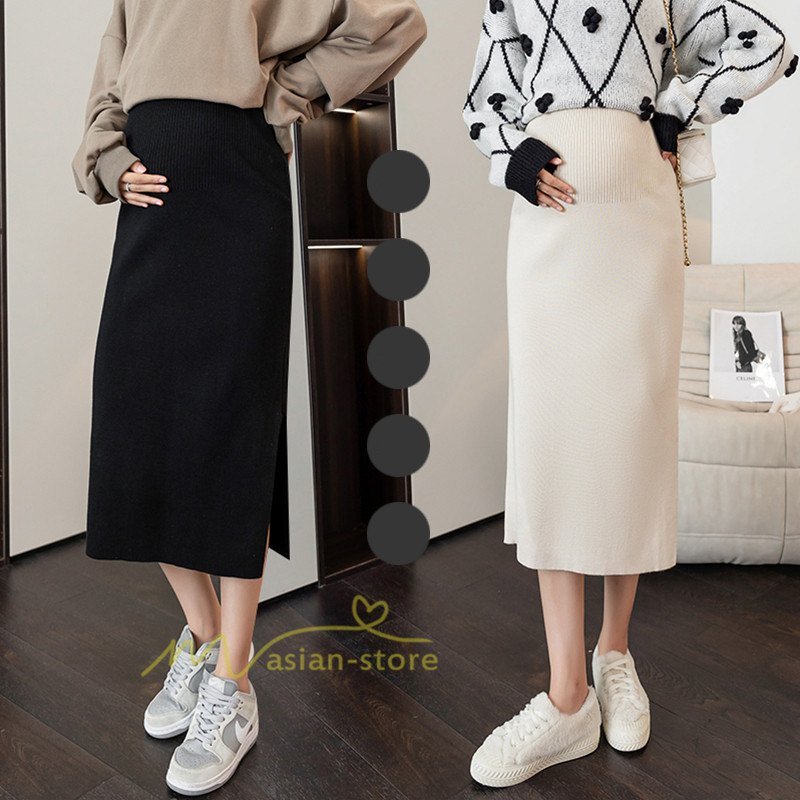 美シルエット 産前産後 マタニティニットスカート 着れる ロング ウエスト調節機能付き オフィス カジュアル フォーマル スリット 妊婦服 フィット お出かけ上品