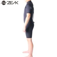 ZEAK(ジーク)の子供用ウェットスーツ「スプリング」です。生地厚はボディ3mm、腕2mmとなります。半袖半ズボンタイプのウェットスーツ。水温・外気温ともに暖かい初夏から夏の朝夕、秋口まで使用。一般的に、スプリングと言われるが、着用シーズンは春ではなく真夏前後(7月、8月、9月)である。半袖、半ズボンタイプなので、女性や子供でも着用しやすい。最近では、屋内プール(フィットネスジム)で「プール冷え」対策として着用する人も多い。1着持っているとたいへん重宝するウェットスーツです。
