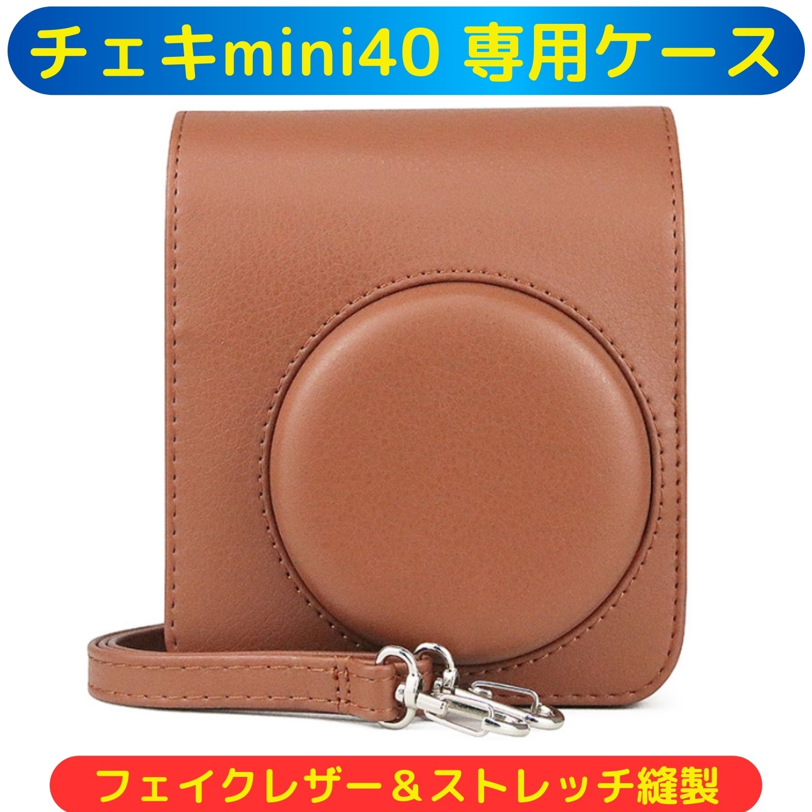 カメラケース チェキ instax mini40 用互換ケース ストラップ付 防水 防塵 チェキカメラ保護 フェイクレザー仕様 ブラウン