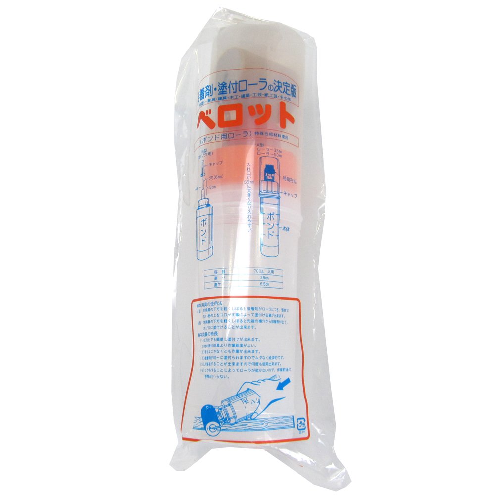 材質:容器/ポリエチレン、ローラー芯/木、金具/ステンレス、毛/ナイロン、オレンジキャップ/ポリエチレン、赤キャップ/ポリエチレン