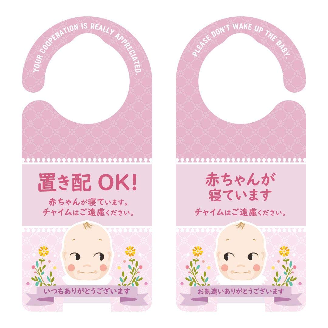 ヘキサゴン ドアノブプレート 置き配OK 赤ちゃんが寝ています 日本製 ピンク 約20.7×9.2×0.9cm 1180