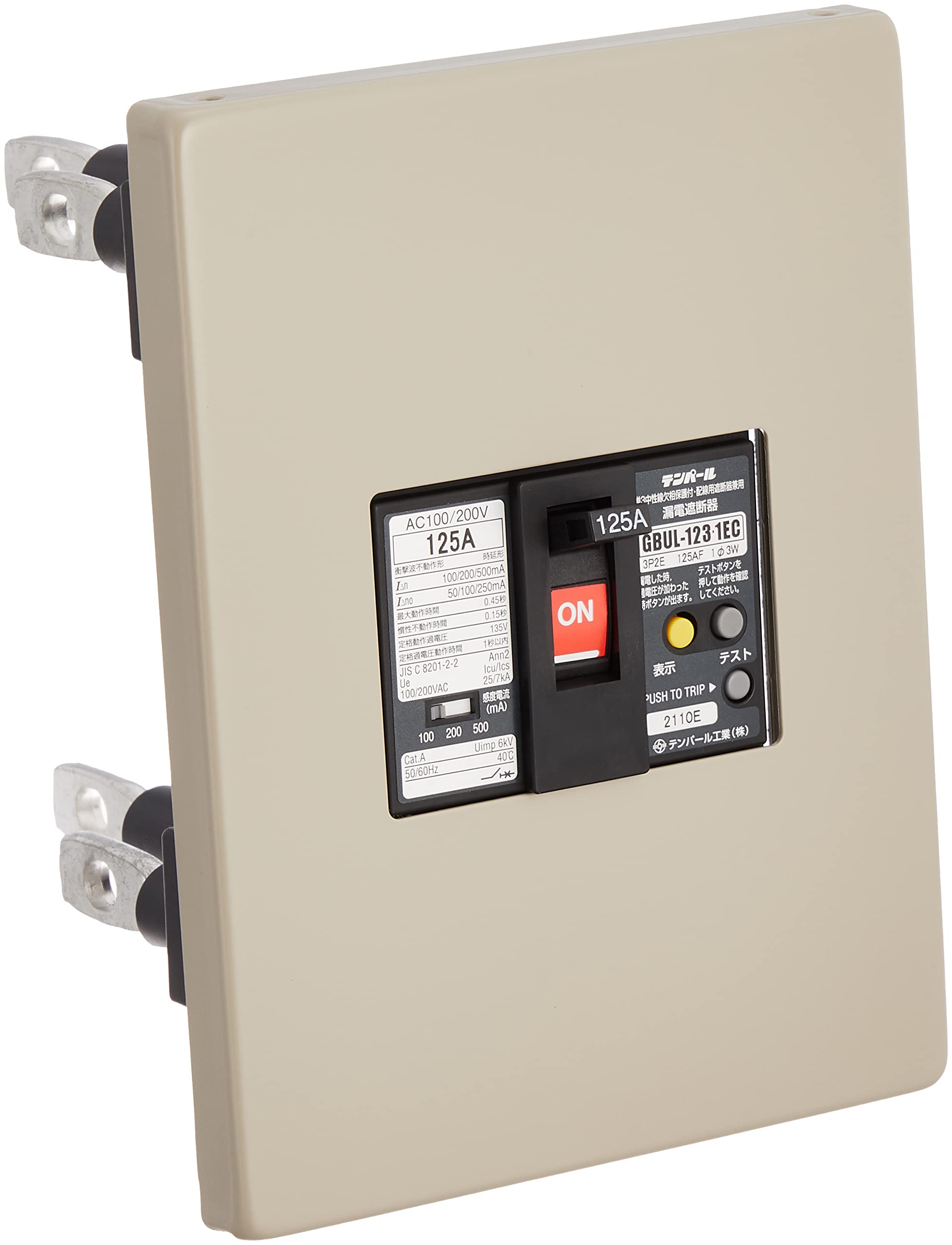 商品名:テンパール(Tempearl) 漏電遮断器 U12301EC12W2LFV 単3中性線欠相保護付 OC付 125A 100/200/500mA