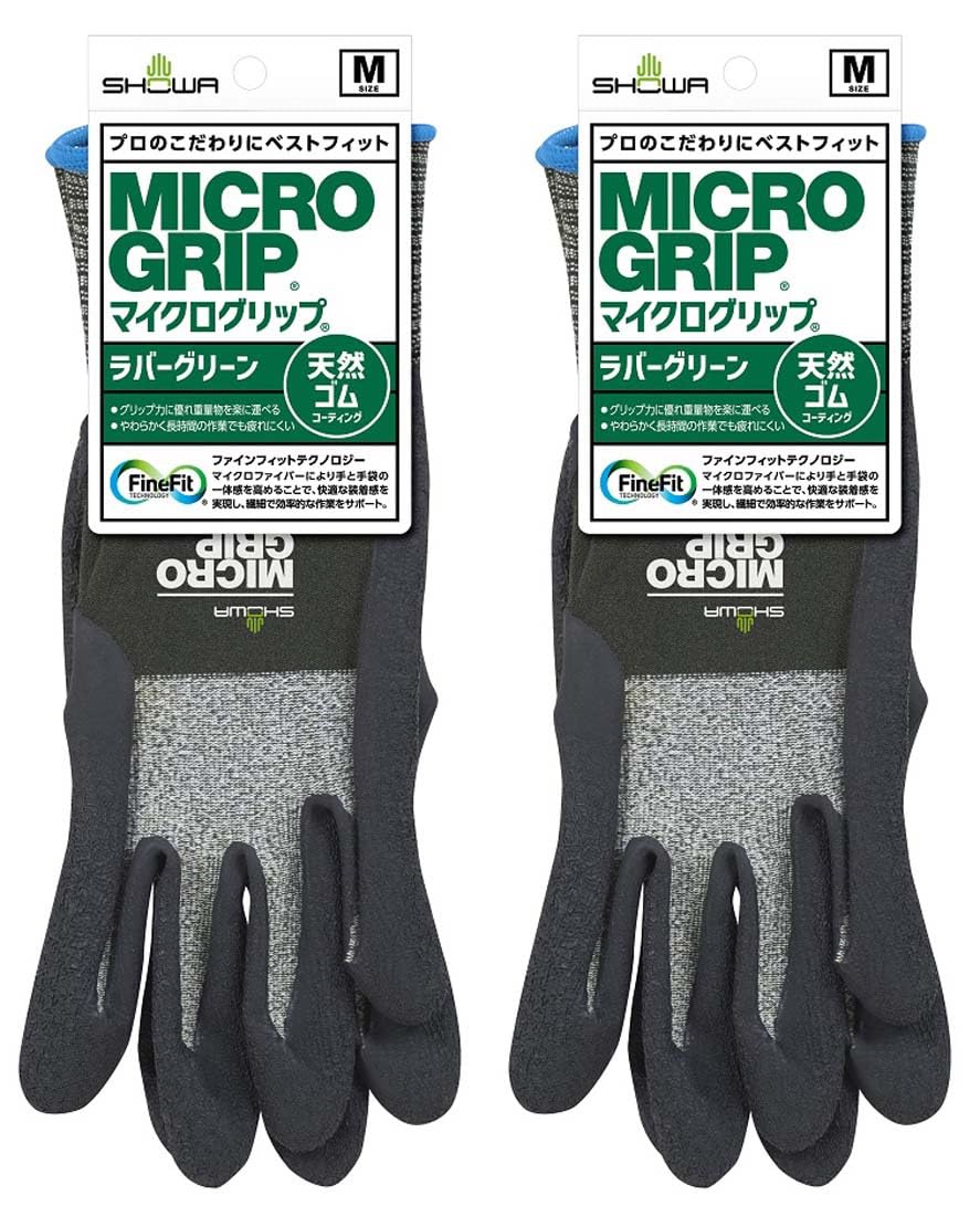 ショーワグローブ 作業手袋 マイクログリップ Mサイズ ラバーグリーン 1双×2個セット 抗菌防臭加工 すべり止め加工 No.344