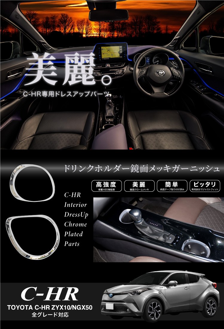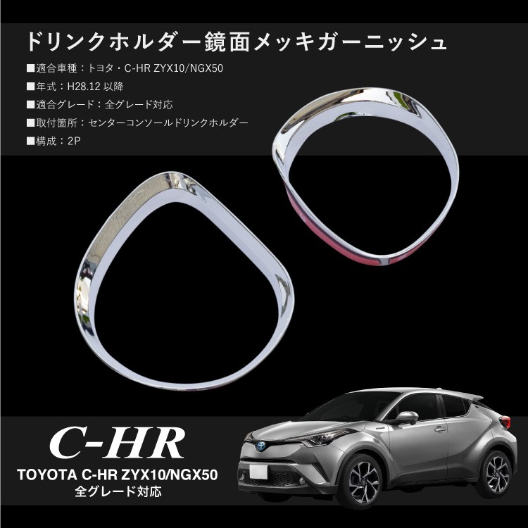 トヨタ C-HR ドリンクホルダー メッキリング 2PCS インパネ 内装 インテリアパネル あすつく対応 _51531