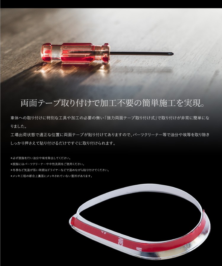 裏面には両面テープが予め貼り付けてありますのでお届け後すぐに取り付けが可能です。