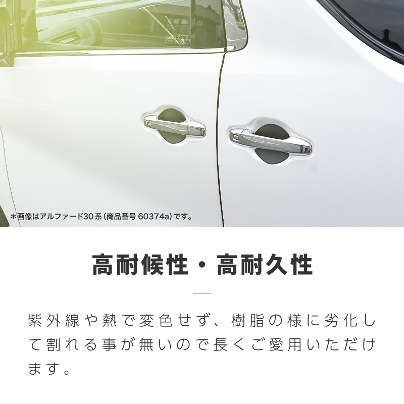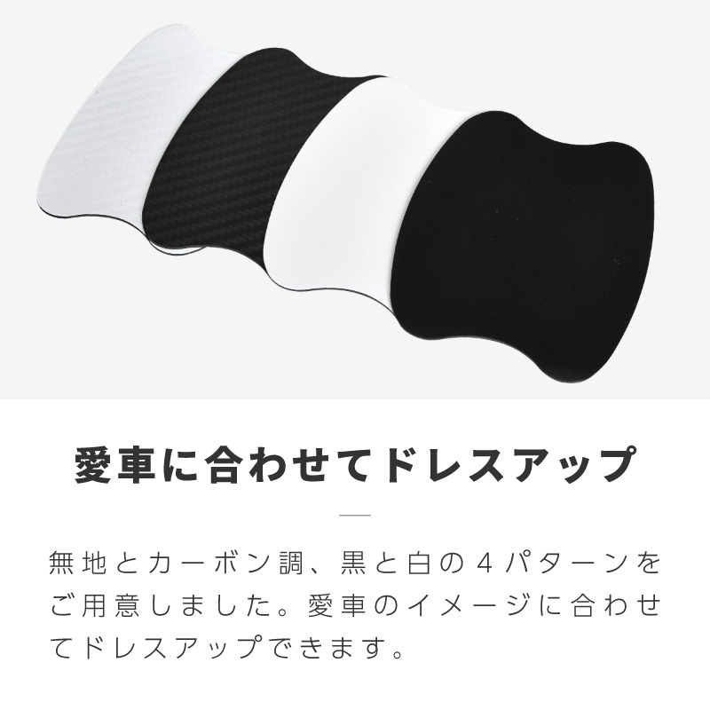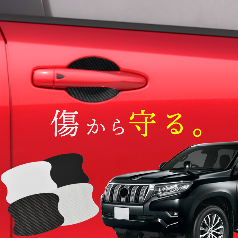 プラド 150系 ドアプロテクター 4枚入 マグネット ドアガード ドアハンドルプロテクター ドアノブガード ドア傷防止 カーボン調 ブラック ホワイト フロント リア 外装 ドレスアップ パーツ アクセサリー テープによる塗装への影響ゼロ、マグネット式ドアハンドルプロテクター。