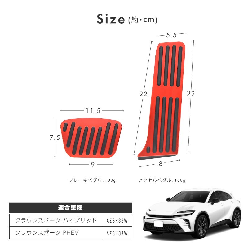 クラウンスポーツ ペダルカバー アルミ 滑り止めラバー ヘアライン加工 アクセル ブレーキ 内装 パーツ ドレスアップ カスタム 新型 シルバー レッド ブラック ブルー鮮やかなカラーでドレスアップ