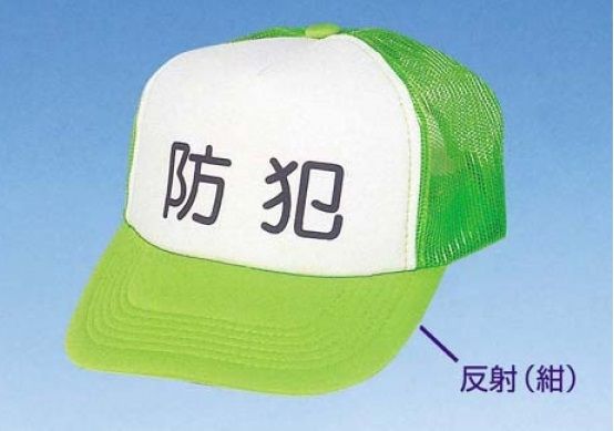 アメリカンキャップ(防犯) 反射文字入り 蛍光緑