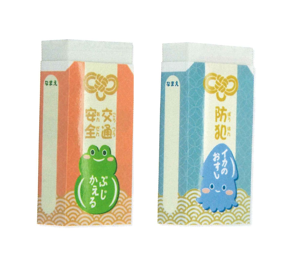 お守り 消しゴム2種 防犯( いかのおすし )・交通安全(ぶじかえる)