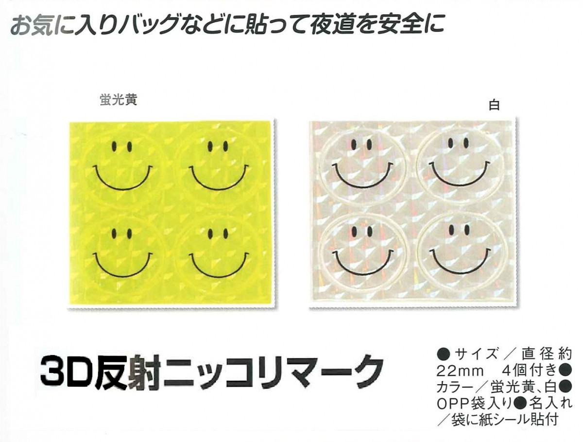 【100シートセット】 3D 反射 リフレクター ニッコリマーク ステッカー シール