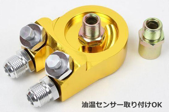 エンジンとオイルエレメントの間に挟んで取り付けてオイルクーラー用ホース取り付けできます。