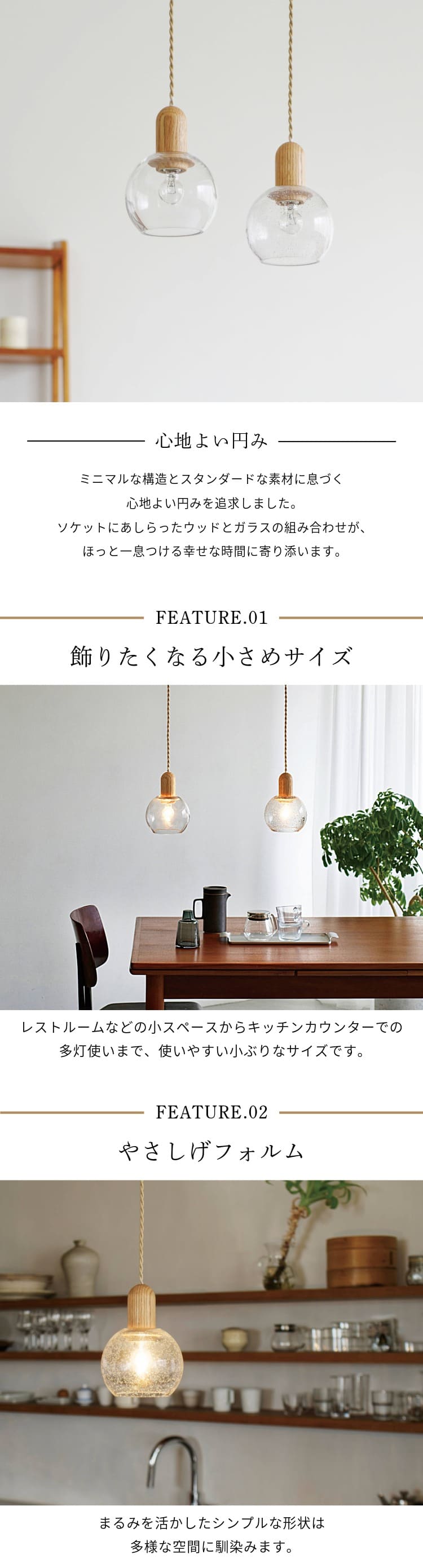 ソケットにあしらったウッドとガラスの組み合わせがほっと一息つける幸せな時間に寄り添います。