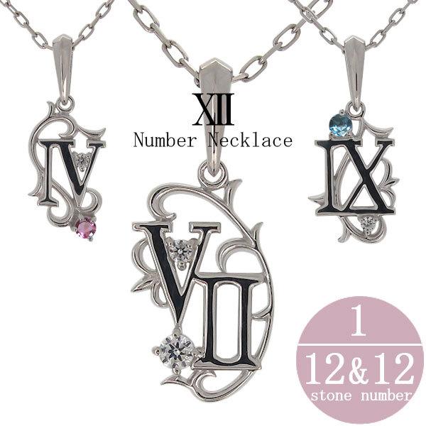 ナンバーネックレス メンズ シルバー ネックレス 数字 ローマ数字 ペンダント 誕生石