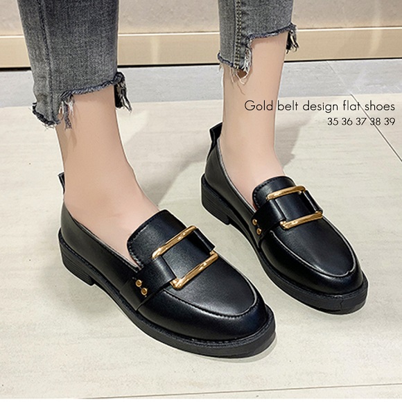 フラットシューズ ローファー ベルト ベルトデザイン 靴 シューズ パンプス フラット ローヒール ゴールド 韓国ファッション 春 夏 秋 冬 カジュアル シンプル